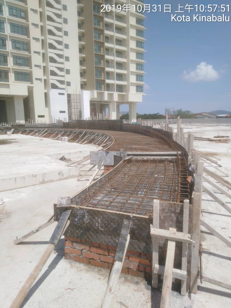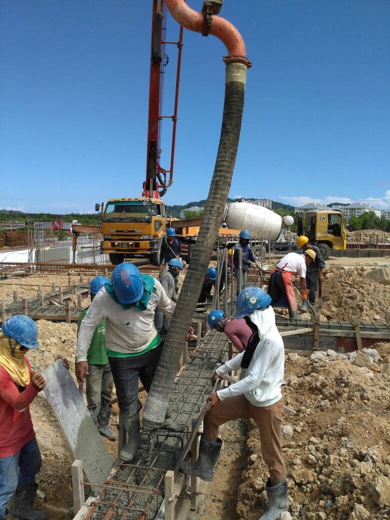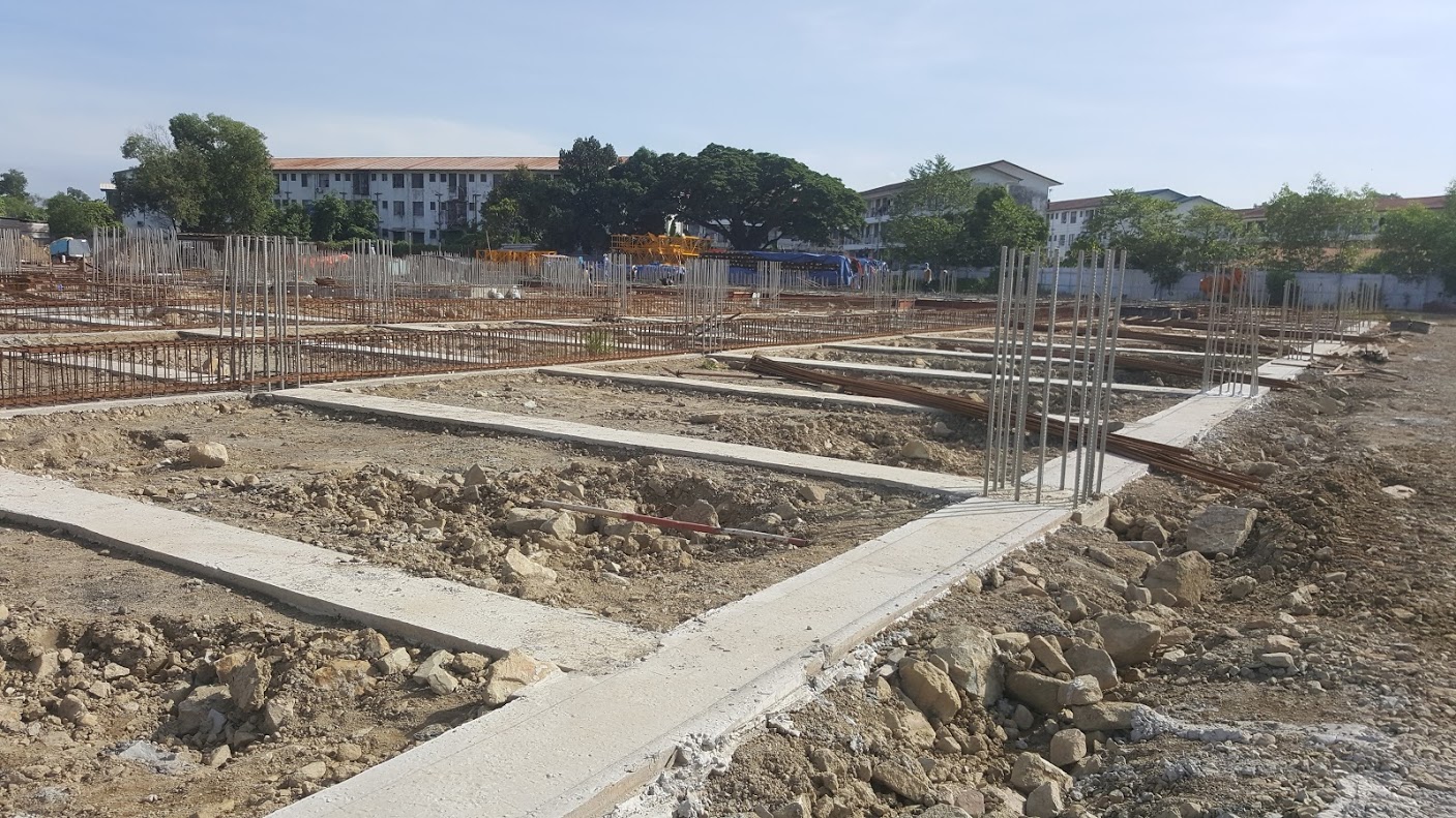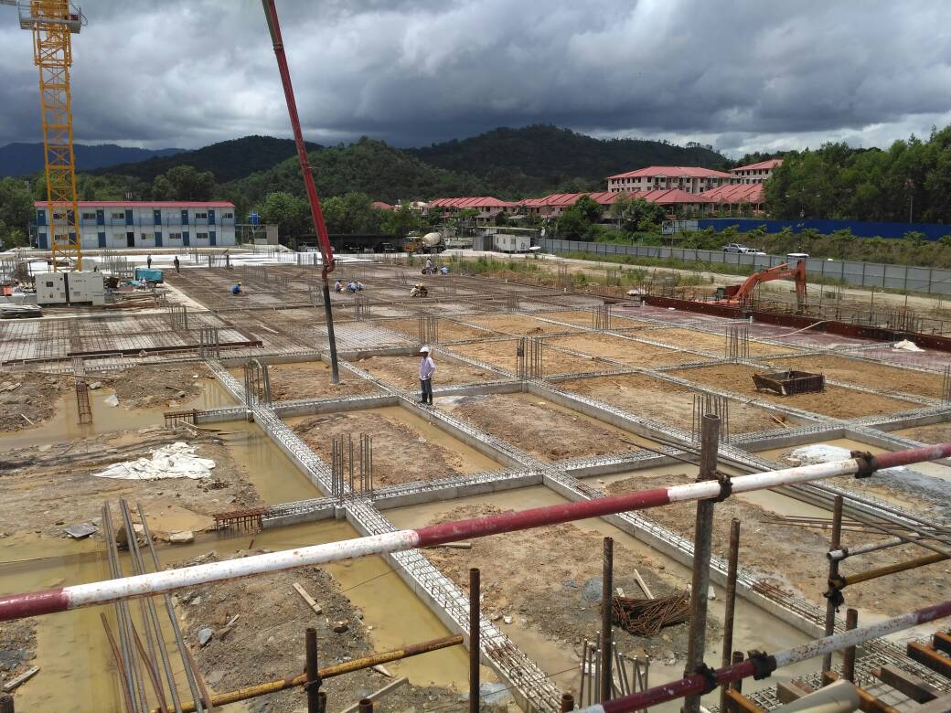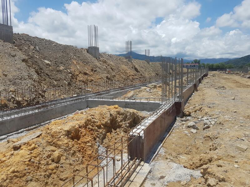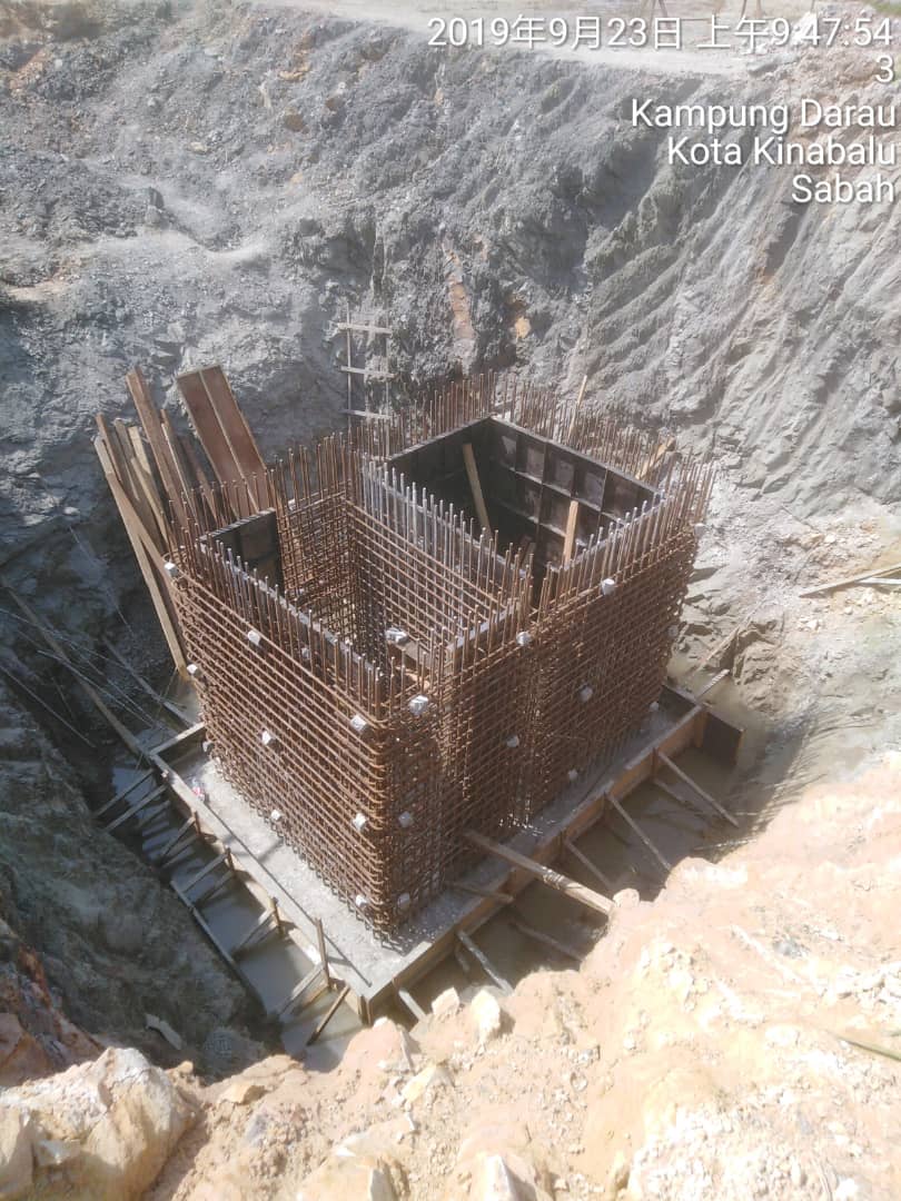Ground beam concrete casting & rebar works in progress.