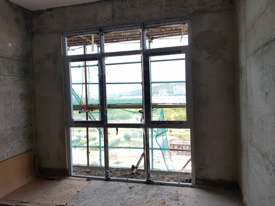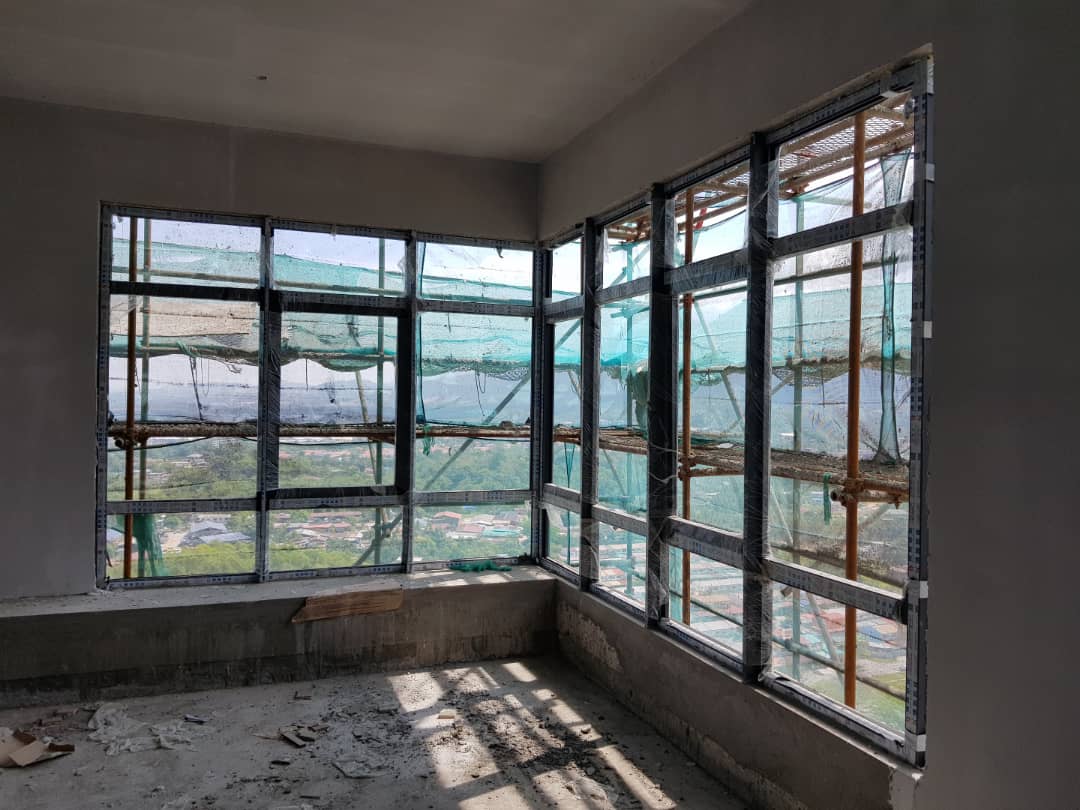 Window frame installation work in progress (9th floor)