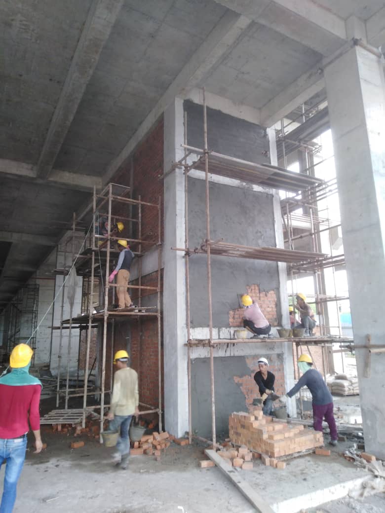 Commercial shop lot external wall plastering work in progress