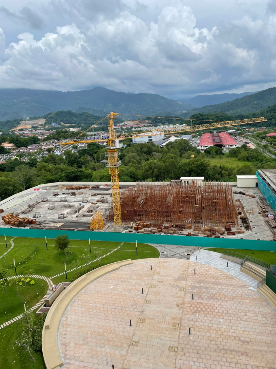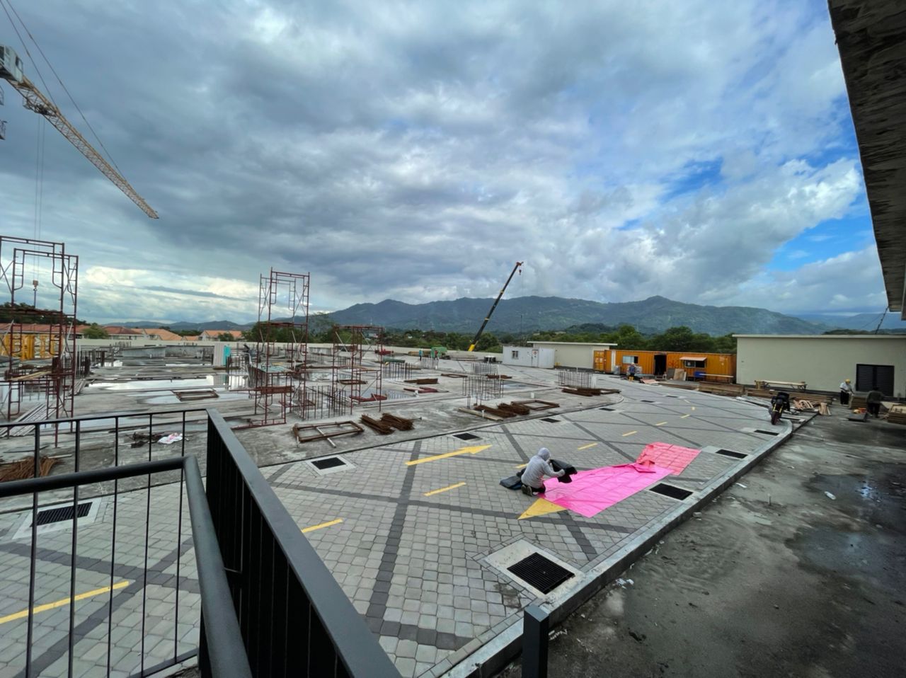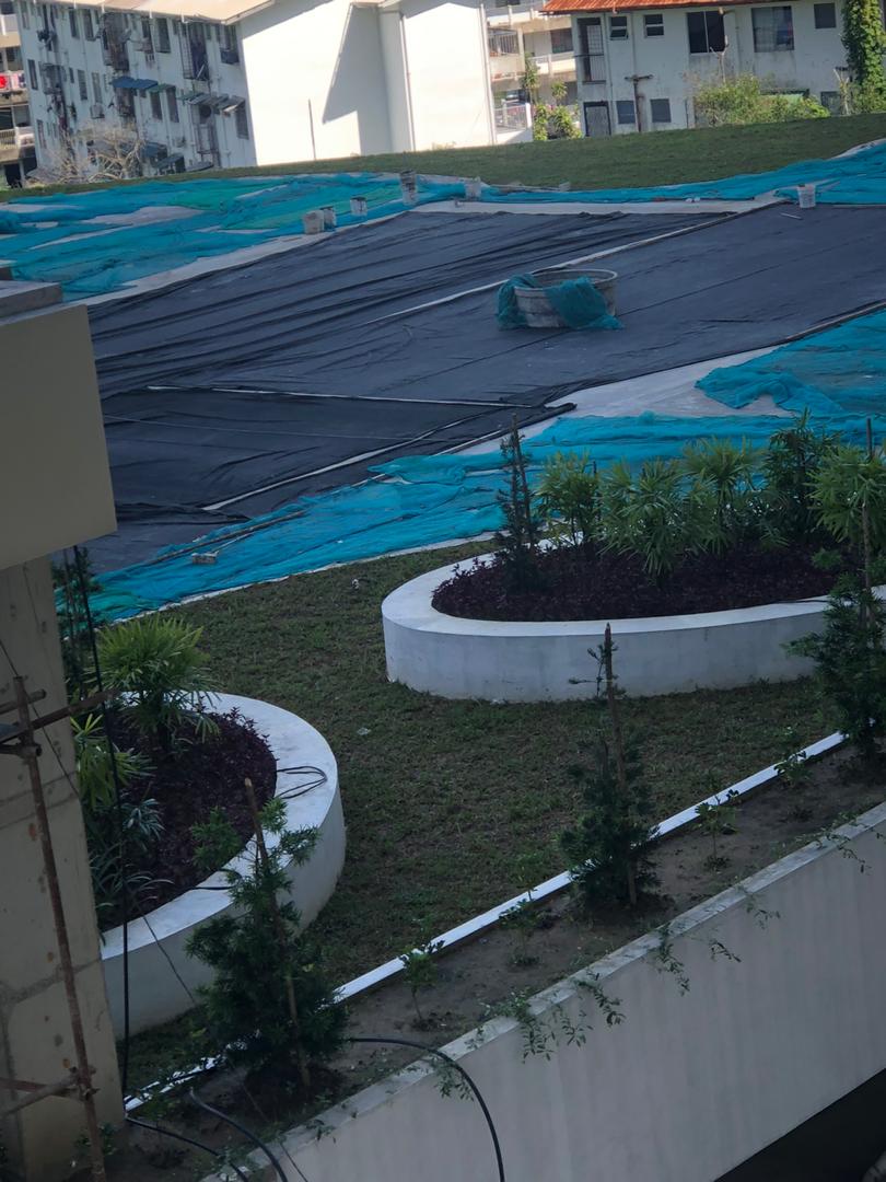 Landscaping podium area in progress.