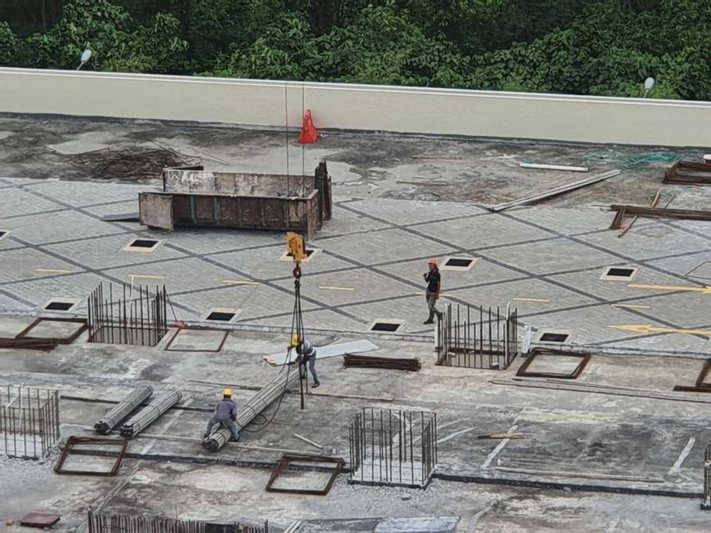 7th floor slab rebar & formwork in progress.