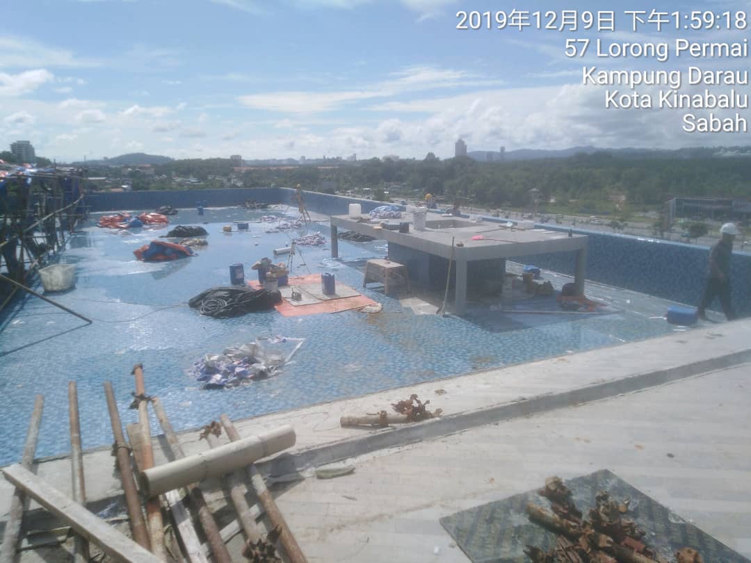 Swimming pool area in progress.